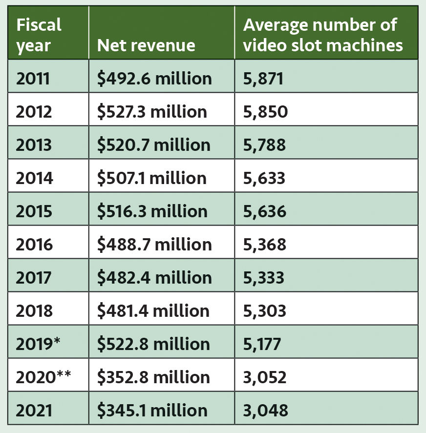 *During this year, Newport Grand closed and the Tiverton casino opened.