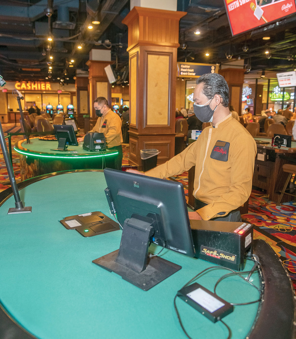 CARD CARRYING: Blackjack dealers Rithy Sen, foreground, and Hoa Lam are ready for gamblers to step to the tables on the casino floor at Bally’s Twin River Lincoln Casino. / PBN PHOTO/MICHAEL SALERNO[/caption]