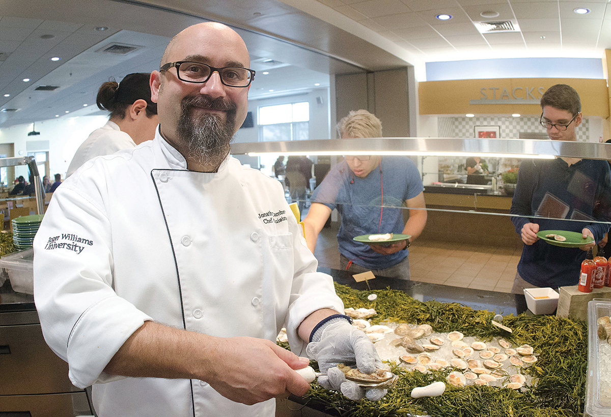 You came to Roger Williams University in 2014 with more than 30 years of experience in hospitality. Why shift from a career track working as a top executive chef to leading culinary operations for a local university? I wasn’t looking for a career change. I had already spent 10 years at Castle Hill Inn, and then I had shifted over to the Boat House Waterfront Dining in Tiverton, and I highly respected, and still do, Newport Restaurant Group. It just so happened that a friend who worked at Roger Williams University mentioned that Roger Williams and Bon Appétit Management Co. were going to be making some changes, and I know that their ideals are in line with my culinary career. They share the same core values as I do in terms of working with local farmers and top-notch food vendors that supply us with high-quality ingredients. We’re talking about sustainability, the local food movement, engaging in conversations with farmers and becoming lifelong friends with partners through the hospitality industry.