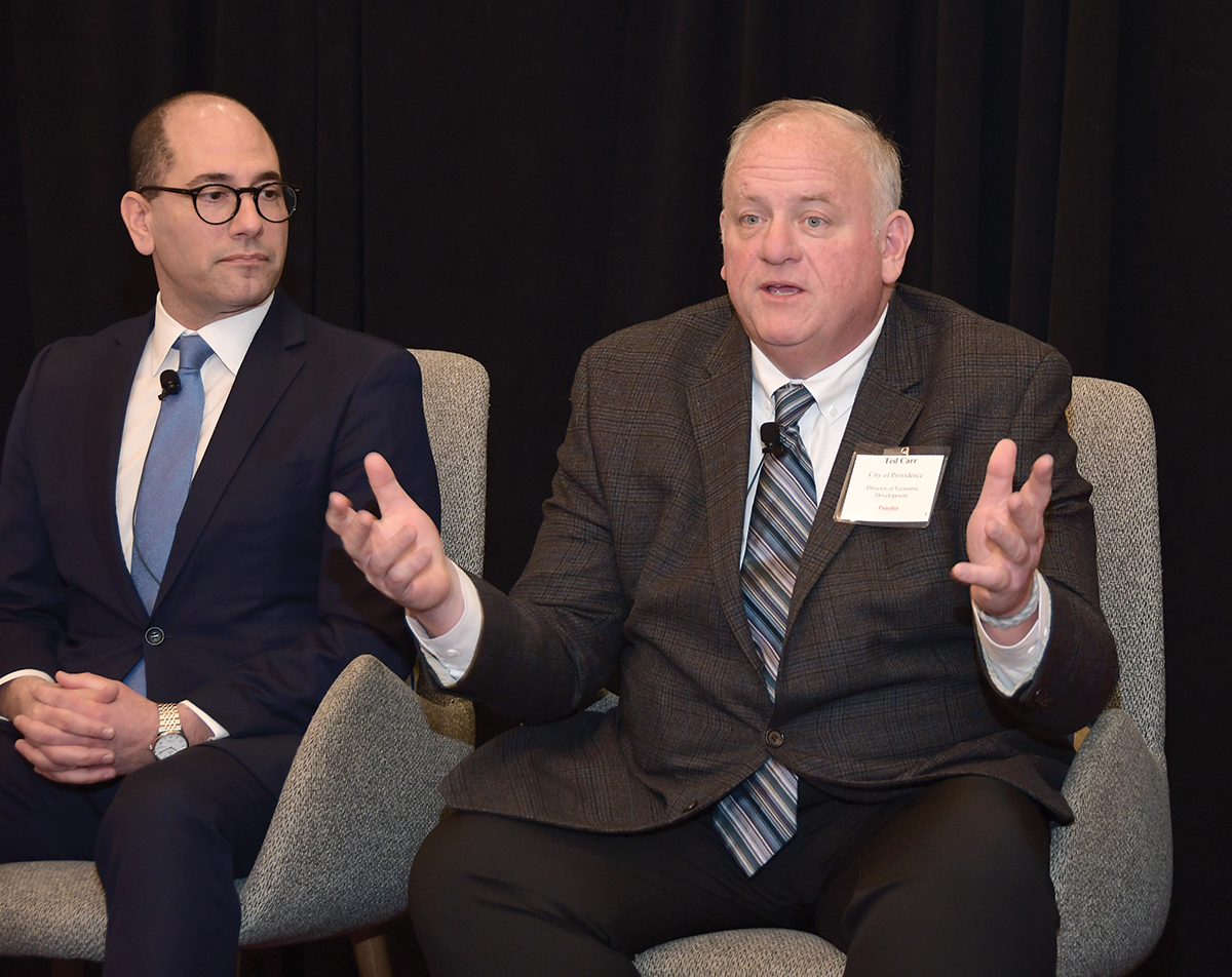 HELPING HAND: Edwin “Ted” Carr, Providence’s economic development director, says strategic investments by local government can be critical for the economy. At left is David Salvatore, executive director of The Providence Foundation.