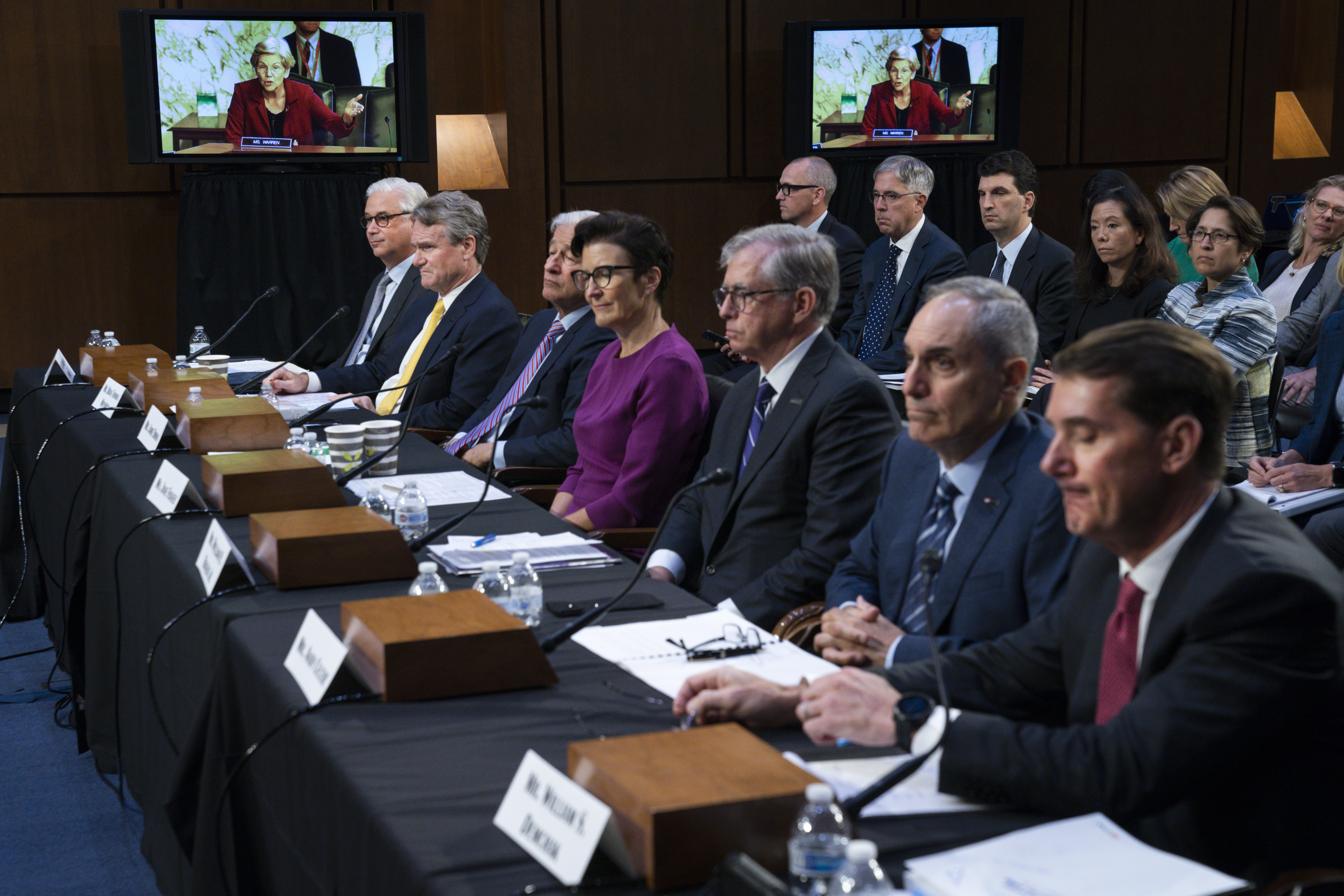 The hearing featured a exchange where Jamie Dimon, the CEO of JPMorgan Chase, apologized to Warren for not getting her the data she requested and promised she would have it at the end of that day.