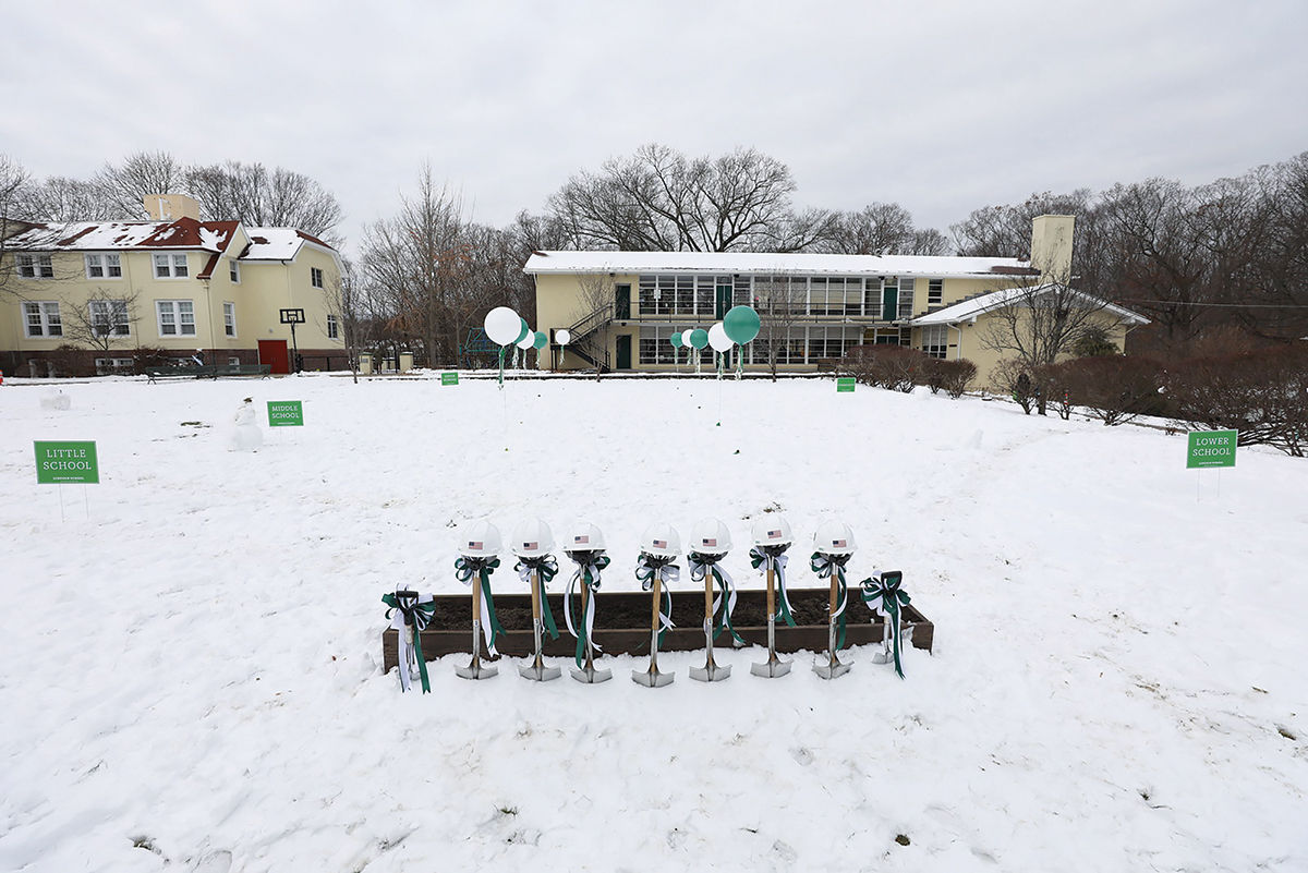 READY TO DIG: Helmets sit on top of ceremonial shovels for the groundbreaking of Lincoln School’s Little School expansion project in December 2019. / COURTESY LINCOLN SCHOOL[/caption]