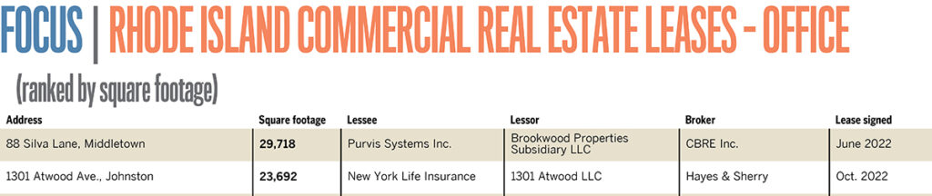 Total square footage leased in 2022: 357,303 The complete list is available for purchase online. For information about participating in PBN’s Top Lists, or to make additions or corrections, call (401) 680-4838 or write to Research@PBN.com.