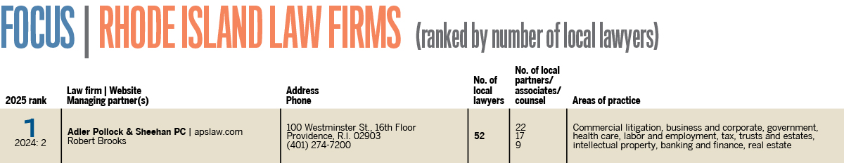Total local lawyers: 432 SUBSCRIBERS: Click here to view the complete list. For information about participating in PBN’s Top Lists, or to make additions or corrections, call (401) 680-4838 or write to Research@PBN.com.