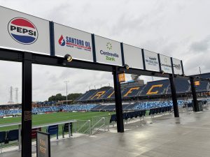 Santoro Oil Co., Big Blue Bug Solutions, Isle Brewers Guild LLC, Bally’s Corp., Cox Communications Inc., Collette Travel Services Inc. and G-Form LLC are among local companies who have signage across Centreville Bank Stadium. The Ford Motor Co. sponsors the stadium’s north gate fan entrance. [PBN also has an advertising partnership with Rhode Island FC.]
