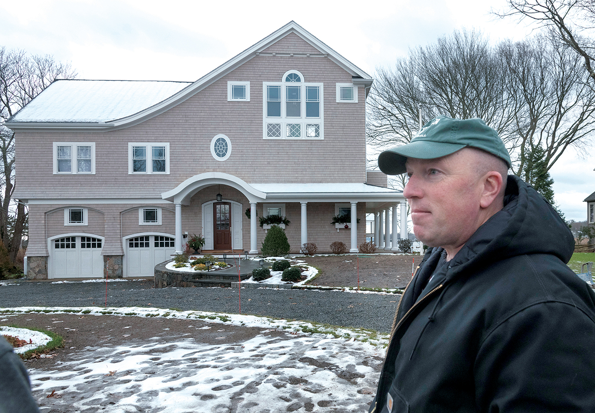 BUILDING BETTER: Dave Caldwell, owner of Caldwell & Johnson Inc. and head of the Rhode Island Builders Association, said the opportunity to build more resiliently is easier and less costly when building something new, as “it gets harder if the structure is already there and you have to move it up.” Caldwell stands in front of one of the homes his company built in North Kingstown. / PBN FILE PHOTO/MICHAEL SALERNO[/caption]