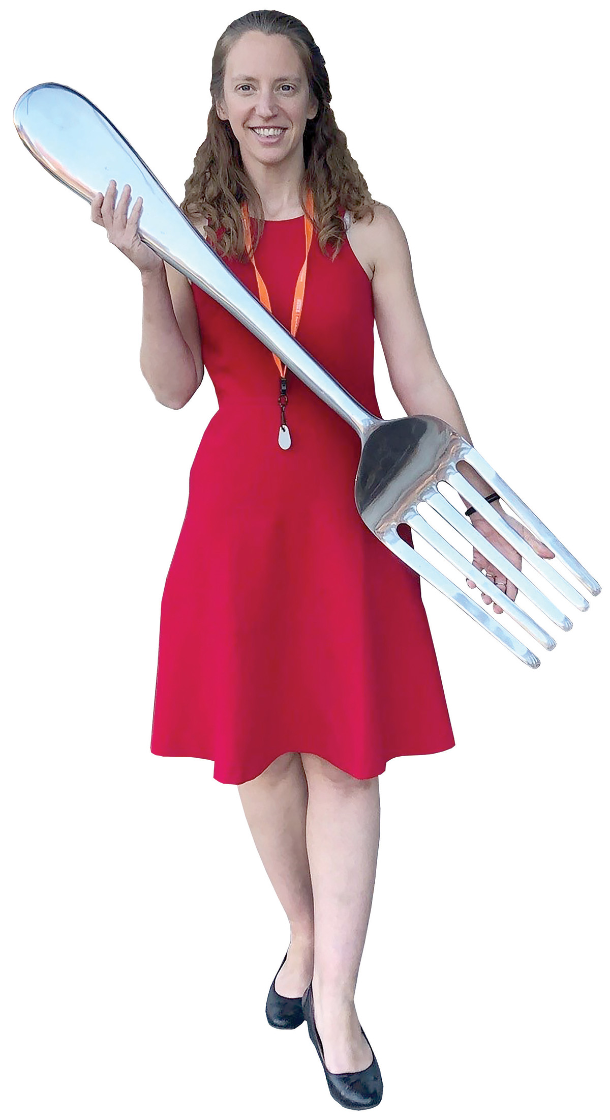 THE PROP: Sue AnderBois holds a giant fork that was a gift from her in-laws, originally as a kitchen decoration.